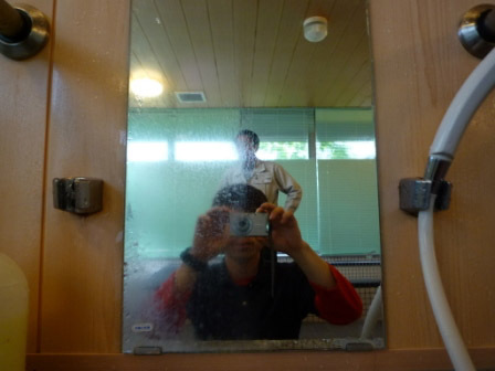 こちらもバスルームの施工です。鏡のウロコが気になりますね。